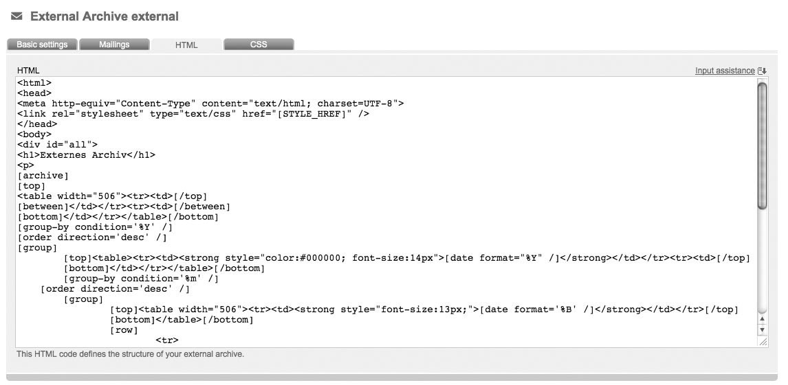 While creating your external archive, Mediatack generates an html source code in the background, which defines the structure of your external archive. If you want to edit the look of your shown archive, you have to edit the source code, which requires appropiate HTML knowledge.