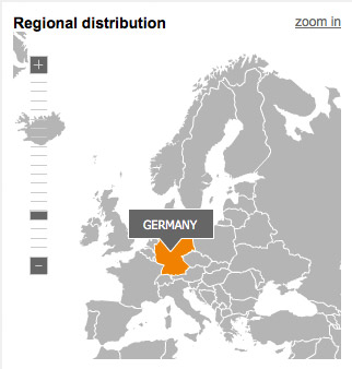 Mediatack generated based on the IP addresses of subscribers an overview of the 'local distribution'. If openings were counted in one country, this will be color coded. By clicking on the country a magnified view appears and cities become visible as points. The larger the dots, the more Openings were counted in this city. Move the cursor over an item, you see the Openings to the location. The data relate to the unique Openings (unique).