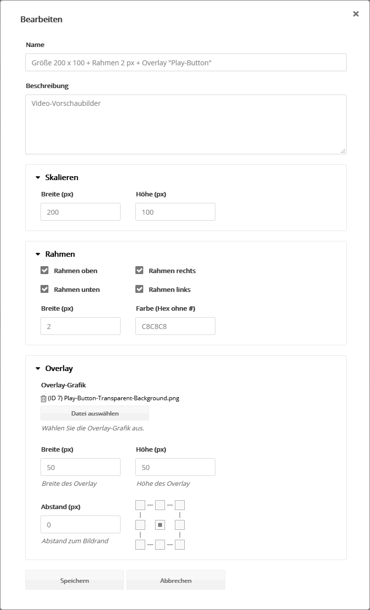 Laden Sie die gewünschte Overlay-Grafik in die Medienverwaltung hoch. Wählen Sie dann die Overlay-Grafik aus.